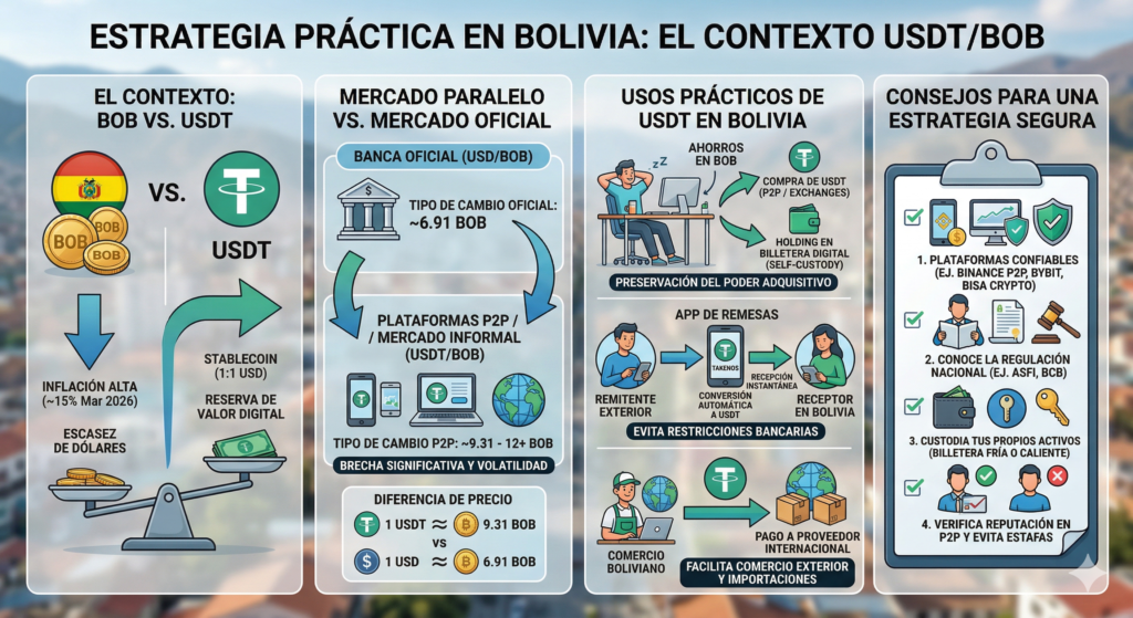 Ese empresario no tiene tiempo para entender el mercado cripto; solo quiere sus USDT ya mismo. A él no le importa pagar 9.10 BOB si eso salva su negocio. Tú le estás prestando un servicio invaluable.