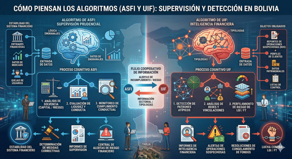 En Bolivia, las entidades financieras están reguladas por la ASFI (Autoridad de Supervisión del Sistema Financiero) y deben reportar a la UIF (Unidad de Investigaciones Financieras).