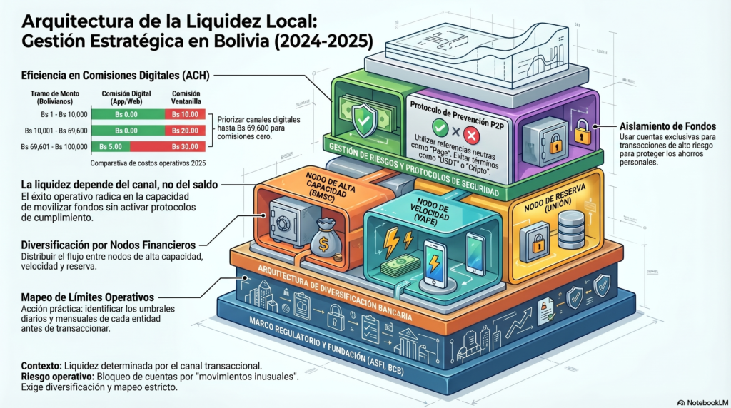 Si tienes 20,000 BOB de capital operativo y los tienes todos en una sola cuenta de un solo banco, estás operando con un nivel de riesgo inaceptable. Si ese banco entra en mantenimiento de sistema (algo común los fines de semana) o te bloquea, estás fuera del negocio.