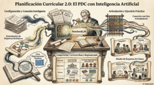 NotebookLM cambia las reglas del juego porque asume la carga cognitiva del «cruce de datos». Tú aportas la intención pedagógica, el conocimiento de tus alumnos y tu toque personal; la Inteligencia Artificial se encarga de buscar en las 500 páginas del currículo oficial los verbos correctos, los contenidos exactos para ese año de escolaridad y de redactarlos en el formato institucional requerido.
