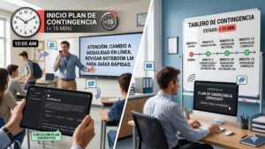 Genera un Plan de Contingencia Asincrónico breve para presentar a dirección. Debe incluir: